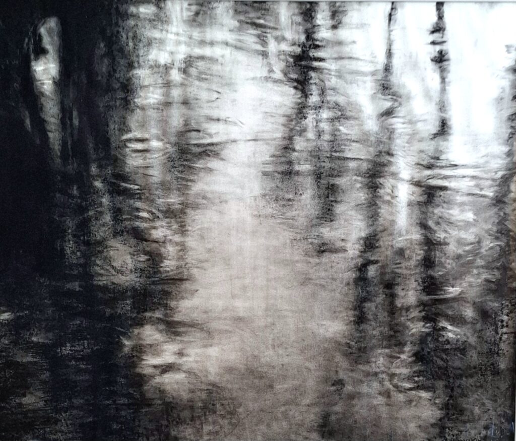 Untertitel: Claudia Bormann LICHTUNG – TAUBER (2019) Kreide und Kohle auf Papier 85 x 105 cm