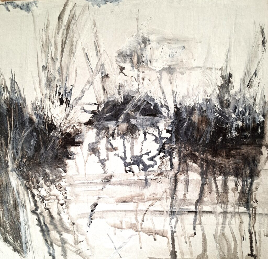 Titel: Mendong III Jahr: 2025 Kategorien: Malerei, Zeichnung Technik: Acryl auf Papier auf Holztafel Größe: 41 x 42 cm Preis: auf Anfrage Untertitel: Mendong 2025 41 x 42 cm Beschreibung: indonesisches Sumpfgras