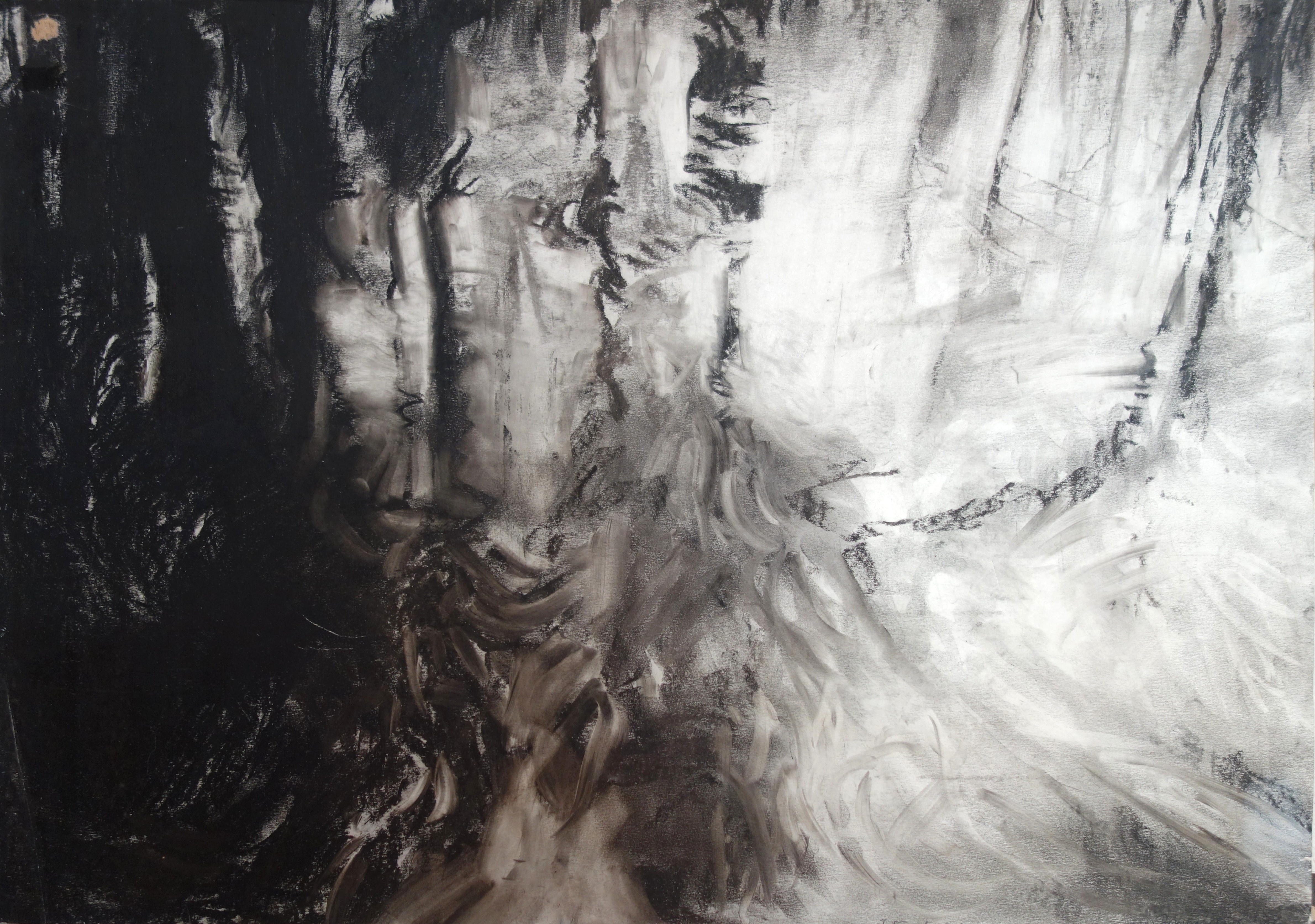 Titel: Reflexion Jahr: 2024 Kategorien: Zeichnung Technik: Kreide und Kohle auf Papier Größe: 45 x 64 cm Preis: auf Anfrage