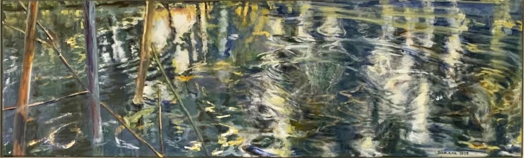 Titel: Semarang 1 Jahr: 2023 Kategorien: Malerei Technik: Acryl auf Leinwand Größe: 60 x 200 cm Sammlung: Elysee - "Villa" Untertitel: Wasserbassin auf Java